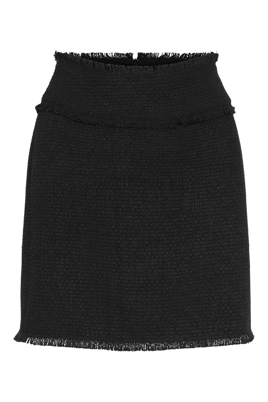 Et tidløst svart miniskjørt fra Love Lolina i tweed med en elegant, lett innsvinget fasong som passer perfekt til både jobb og fritid.
