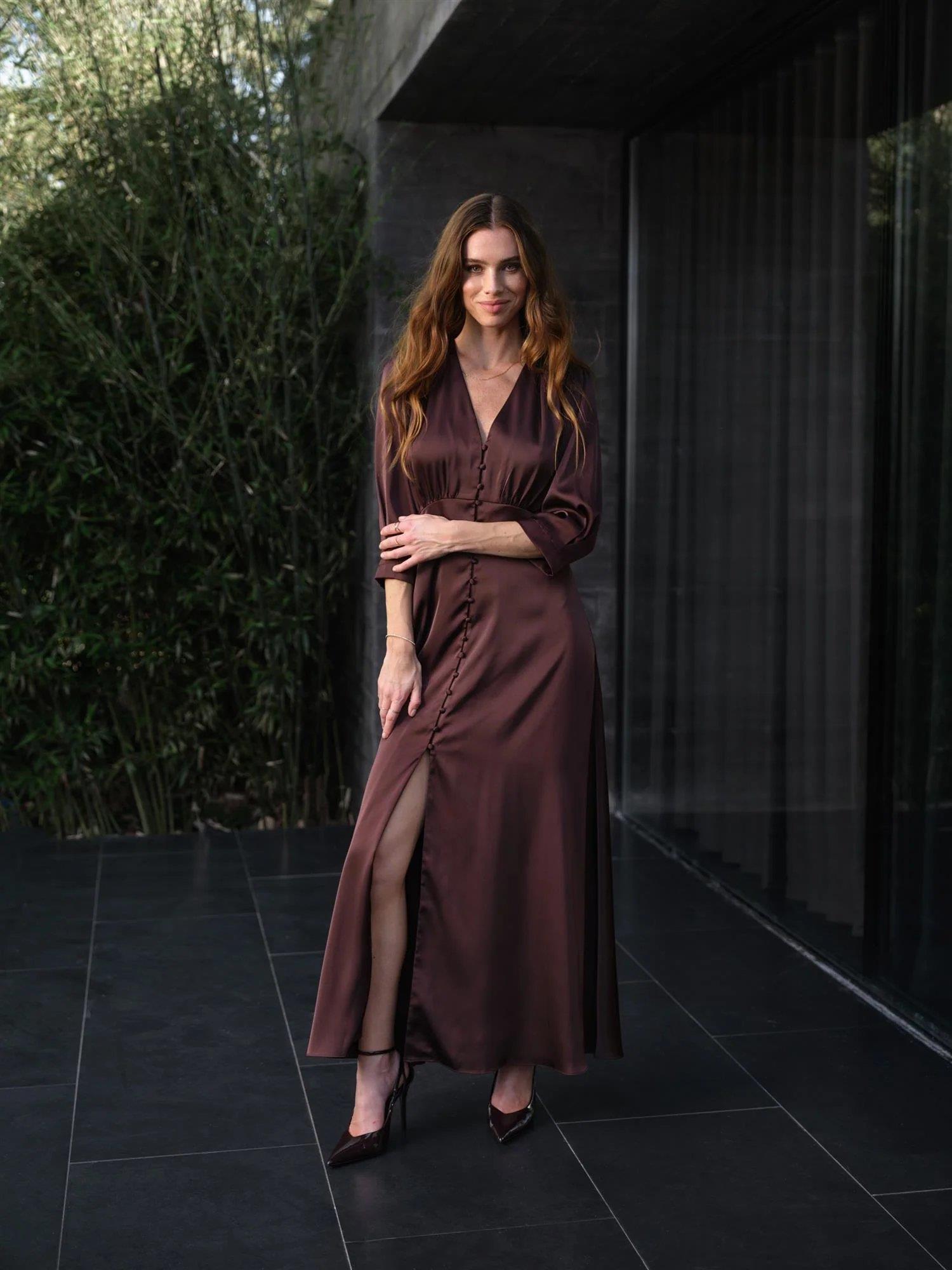 Sorrento Dress fra Ricco Vero i utrolig vakker farge denne høsten! Denne bestselger kjolen har en flott passform og er elegant og tidløs til sesongens festligheter. Sorrento har v-neck, knepping helt ned og splitt fremme. Tre kvarts ermer. Helt supert til sesongens bryllup og festligheter.