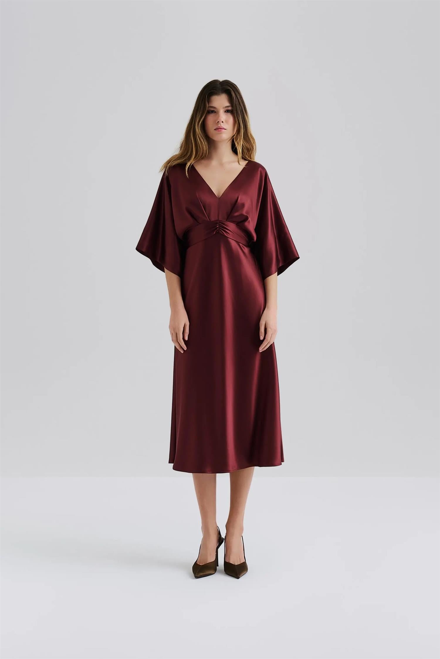 Juno V-Neck satin midi dress
