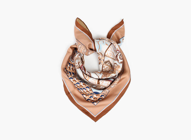 NOHR Martha Silkeskjerf er et eksklusivt silkeskjerf med håndsydd rulle-søm. Skjerfet har et to-sidig print som gjør at du får to skjerf i ett.